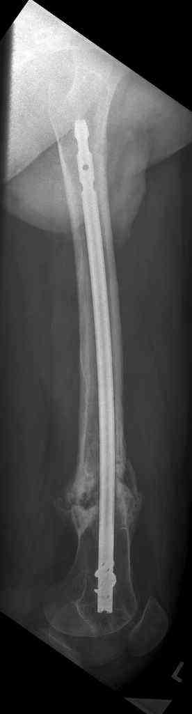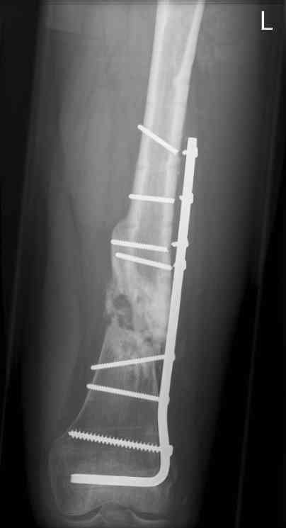 This is a tough case .The poor kid have experienced many surgery and the site of femoral fracture must have bad blood supply. A s a orthopedist , how to fix the fracture is a problem that faced with us . The purpose of re-operation is realization of rigid internal fixation and less aggressive to blood supply.
