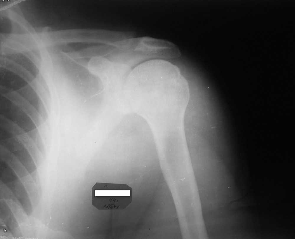 Мужчина, 45 лет. Профессионально занимается культуризмом. При жиме лёжа возникают резкие боли в левом ключично-акромиальном сочленении в течение 3 лет. В покое болей нет.