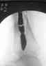 Заштифтовали 11 мм реконструктивным штифтом, увы, устранить деформацию полность даже поллер винтами нам не удалось. Интраоперационно на экране ЭОпа оан выглядела не так критически, как на контрольных снимках после операции. Задним умом надо было отложить штифтование после репозиции в аппарате (прав был А.Н.Челноков!), слишком были заняты идеей удаления отломка штифта не оценив проблему устранения деформации. В п/операционном периоде разрешили дозированную нагрузку на конечность.