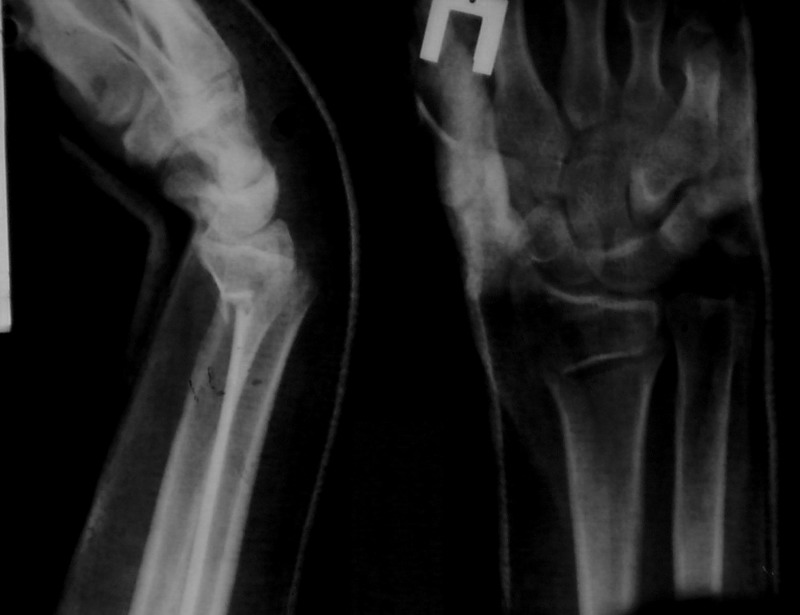 v zavicimocti ot vosmoznoctei. perelom viglidit vne sustava - redukzia + 2-3 kirshnera. proverit posle etogo stabilnost distal radio ulnar joint, ecli ne stab fixatia kirshnerom obichno v polusupinacii.