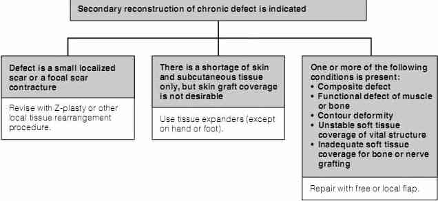 занимает время, и поэтому важно с самого начала принять меры по сокращению дефицита тканей. Удаленные некротические сегменты кости также облегчают напряжения и сокращения мягких тканей.