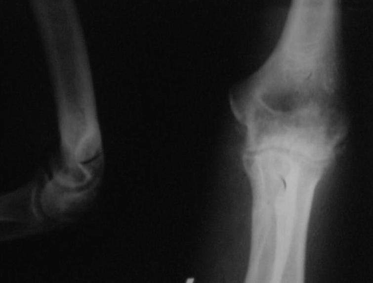 Dear colleguaes! I almost sure this elbow after dislocation and clouse readuction treatment.Despite pure quality of x-ray picture