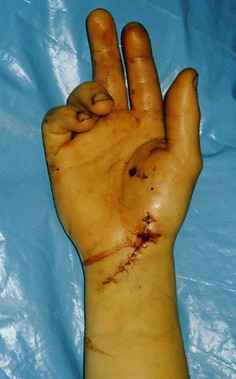 В приложении фото пациентов со свежим ранением сухожилий в неблагоприятных зонах: на уровне пальца и на уровне лучезапястного сустава. В обоих случаях восстанавливались сухожилия и глубоких, и поверхностных сгибателей пальцев.