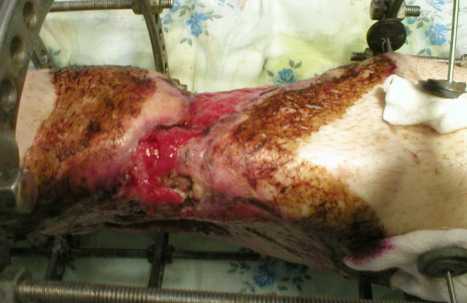 Добрый всем вечер! В продолжение темыВместо этапного эпикриза: Пациенту резецировали часть диафиза б\берцовой кости (около 5 см), лишённую мягких тканей. Сейчас всё выглядит так: < | >