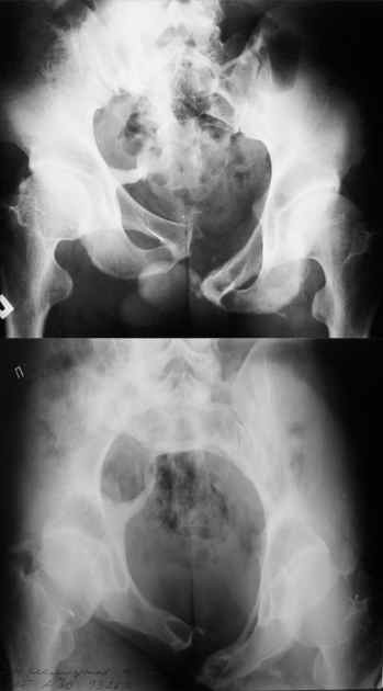 Маленькая иллюстрация (около 5 лет после травмы). Результат плохой - укорочение, хромота, периодически боли в спине, но больной отказывается от операции, видимо, не так все трагично.