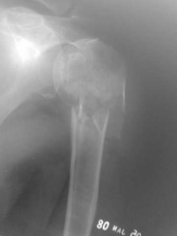 In the proximal humerus, the locking plate is generally introduced through an open incision of the type that I have used. The complex muscle attachments at the proximal end of the humerus, make it difficult to position the plate without opening.