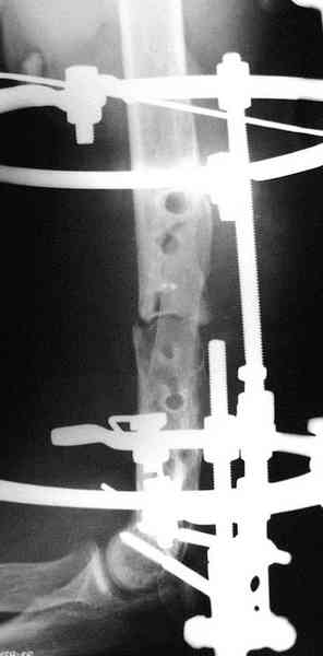 В подобном случае мы бы применили чрескостный остеосинтез. Пример - в приложении.