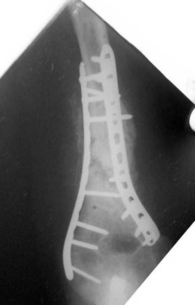остеосинтеза, включая то, что в Кисловодске заезжим австралийским "кудесником" на ложный сустав уложена скорлупа от страусиновых яиц. Последняя операция одиноким локинг плейт в одной из клиник.