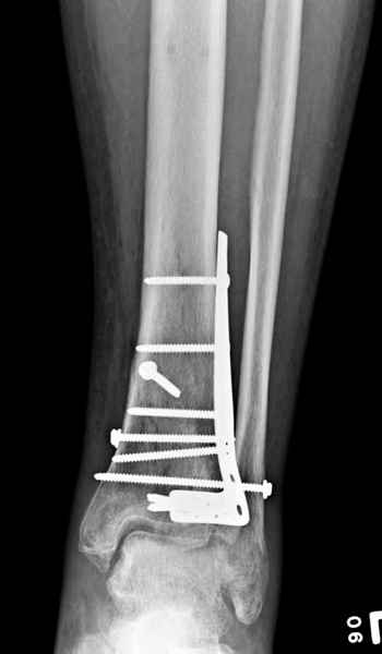 Фиксация наружной лодыжки подсказывается переломом, а малоберцовая является ключом-ориентиром для длины конечности.