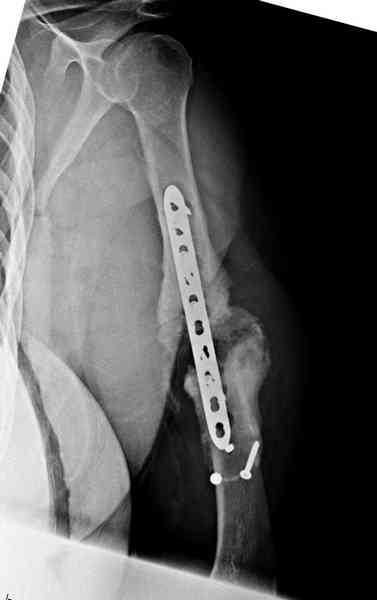 ложного сустава плеча могут быть различными, кто-то предпочитает аппаратом Илизарова (Соломин), пластинами (Волна) или интрамедуллярным гвоздем (Челноков).