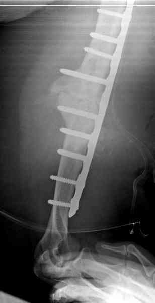 исключение. На снимке 4А диаметр мягких ткани около 20 см, при весе больной более 135 кг, и также выступление Андрея Волны подстегнуло к применению более массивной 4.5 мм локинг пластины.