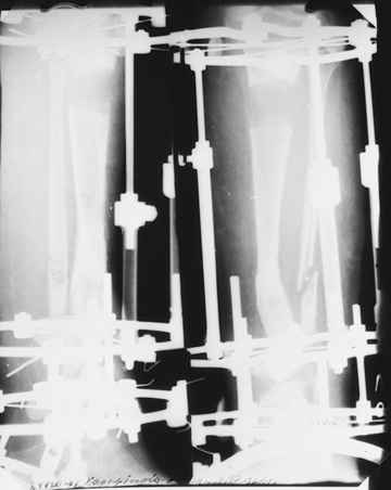 На первом этапе аппаратом Илизарова закрыто устранена деформация голени.