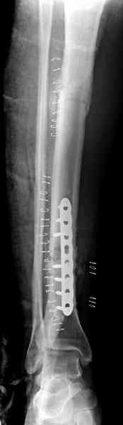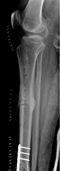 conference мы разбирали похожий случай, ложный сустав большеберцовой кости после резекции опухоли.