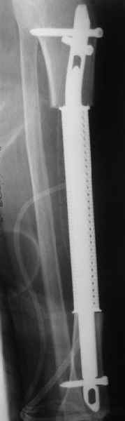 Исходя из диагноза, выглядела адекватной сегментарная резекция, которая дает наименьшее количество рецидивов. Напомню, пациентке 61 год, она еще практически слепая, т.е. функциональные потребности невысокие. Больную положили к нам в отделение. Заказали кейдж в МАТИ (посодействовал Анатолий Федорович Лазарев, ему огромное спасибо), его быстро сделали. На этой неделе состоялась операция - сделали сегментарную резекцию единым блоком. Кортикальная пластинка вроде не не была нигде прорвана, хотя местами сильно истончена. Пока делали остеосинтез, препарат успели отправить в лабораторию, так что распилить получилось только на следующий день. При его рассмотрении с рентгенологом и морфологом сошлись, что это не фиброзная дисплазия, что было первым предположением по рентгенограммам. В полости было и мягкотканое образование. Окончательно заключение дадут через несколько дней. Будем признательны за комментарии и критику.