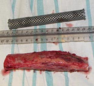 Was this titanium cage custom made for this patient or commecially available for such work? Do you have different lengths of this cage or were you forced to cut it on table to suite tha gap? (Or did you have to make the gap to suite the cage?)