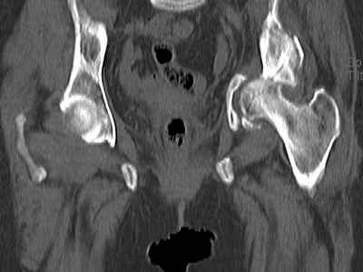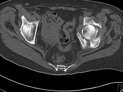 На сегодняшний день сращение отломков имеется на ограниченных участках, имеется дефект задней колонны вертлужной впадины. Движения неплохие, ходит с костылями, приступая на ногу.