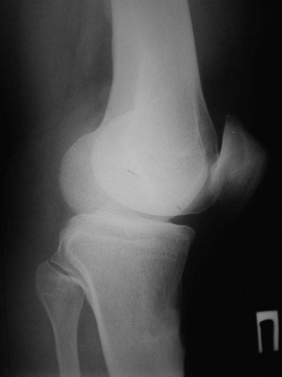 В приложении показано как делается Переразгибательный стресс снимок колена.