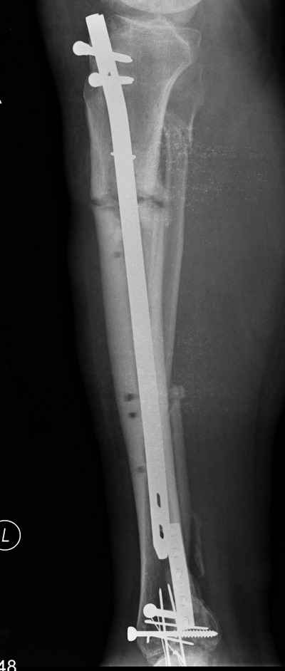 2. С аппаратом и резекцией малоберцовой кости все понятно, но почему вы предполагаете значимое укорочение, требующее транспорта? В моем случае есть признаки формирования нормотрофического (по крайней мере не аваскулярного несращения)- в приложении боковая рентгенограмма.