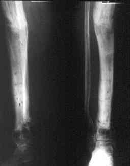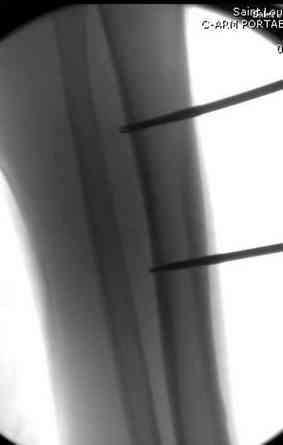 Вы имеете в виду острое укорочение (acute shortening)? Но для резекции большеберцовой кости пока нет показаний. Кроме того Вам тогда придется резецировать малоберцовую кость, так как захождение ее отломков друг за друга при укорочении на данном уровне технически неудобно и создаст натяжение и без этого скомпрометированных мягких тканей.