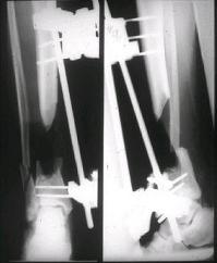 АИ> замена стержневого аппарата на аппарат Илизарова с последующей (одномоментной?)