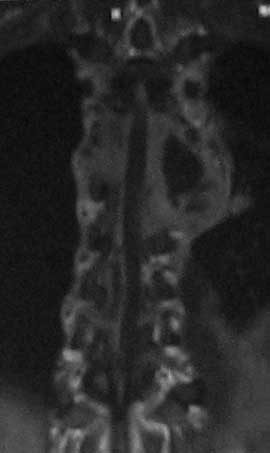 Доплнительное изображение 3. спинной мозг максимально компримирован на уровне 6 грудного позвонка.
