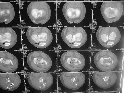4 суток после мотоциклетной травмы. 16 лет. Переведен из районной больницы, где основные раны на голени и бедре были ушиты наглухо и наложено скелетное вытяжение за бугристость и пятку, через 2 суток. При поступлении - высокая лихорадка, анемия. Из сопутствующих только сотряс. Раны на бедре и голени расскрыты, обработаны. На передней поверхности бедра рана с начавшимся нагноением, около 15х8см, полость распространяется от места перелома, где значительная часть отломков практически лишена связи с мягкими тканями, до верхней трети, откуда удалена гематома 200мл. 4-главая мышца повреждена, отрыв и перелом без смещения надколенника. Проксимальный отломок бедренной кости на протяжении 20см на 2 трети окружности лишен надкостницы. Резко выраженный отек бедра. На голени рана на передней поверхности 12 х 5см, дном является лишенная надкостницы большеберцовая кость, некроз краев раны. Множественные раны и участки некрозов кожи в области коленного сустава, обширные некрозы на голени в нижней и верхней третях. Пульсация на стопе отчетливая, при этом некрозы в нижней трети голени постепенно увеличиваются. Сейчас на ИВЛ с клиникой респираторного дистресс синдрома. Что делать - неясно. Возможен ли при таком переломе бедра интрамедуллярный остеосинтез? Было бы здорово фиксировать оба перелома через 1 доступ.