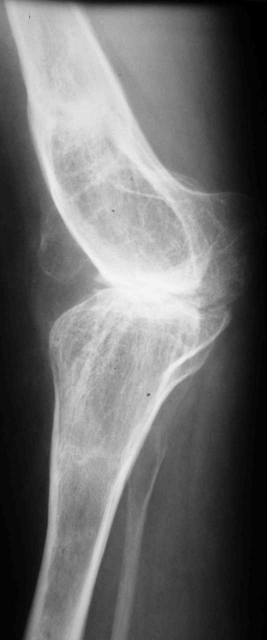 Пациентку беспокоит только выраженный болевой синдром в коленном суставе.