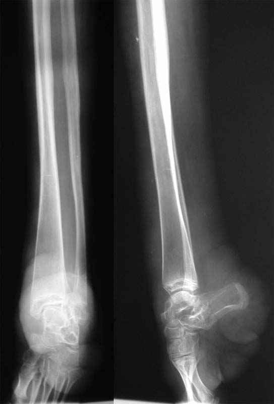При неудовлетворительных резкльтатах первого этапа - возможно думать и об ампутации. Из послеоперацинных осложнений данной патологии при любом типе операции (даже ампутациях)R.M. Letts (1977) отмечал: профузное кровотчение в раннем п/о периоде, выраженный и длительно сохрянющийся отек, замедленное заживление ран.