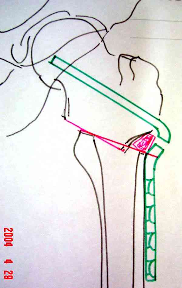 На вертеле делается "срез" в латеральном кортекса для клинка пластины и специальное долото вводится под 90-градусным углом к бедру по заранее приготовленному предоперационному плану.