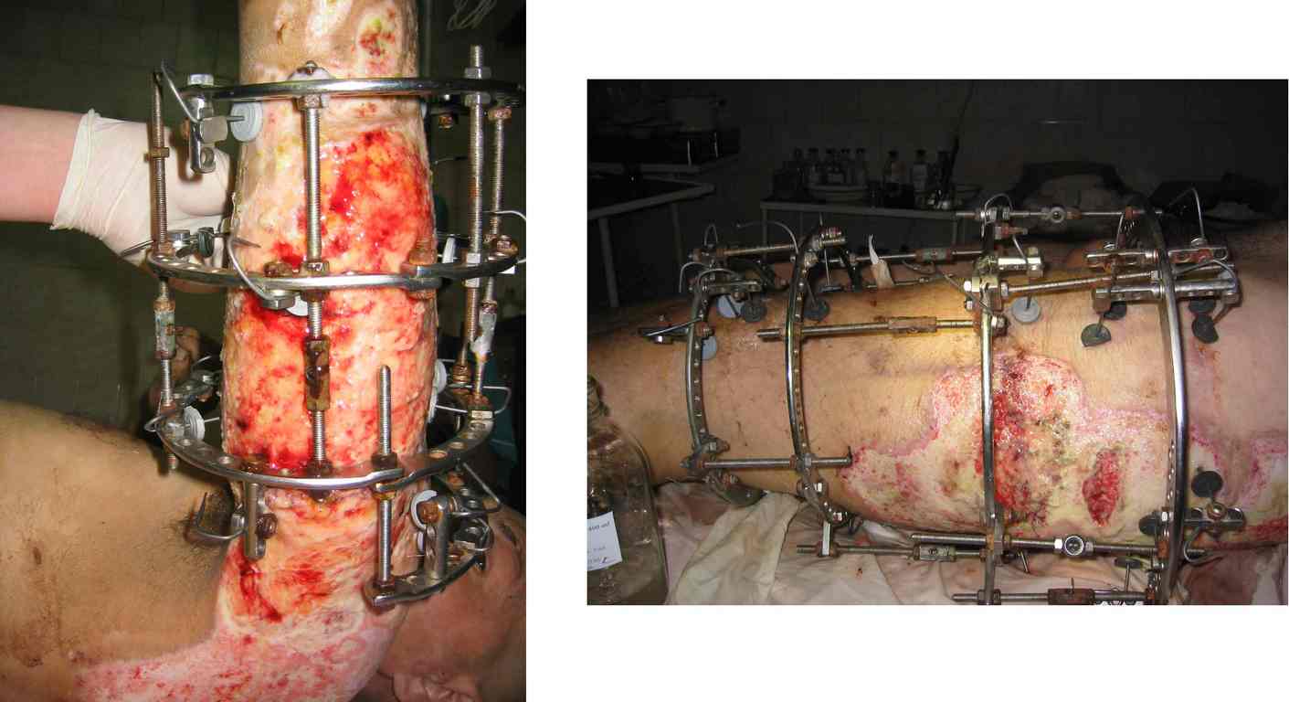 а на бедре после стабилизации состояния и не дожидаясь окончательного заживления раневых поверхностей