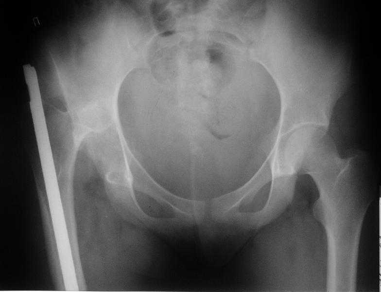 Поступила к нам в отделение. В отделении первым этапом был наложен аппарат внешней фиксации для низведения бедра. 30.09.08 интрамедуллярный стержень удален. Вторым этапом планируется эндопротезирование. В настоящее время у больной имеется контрактура коленного сустава, с амплитудой движений в пределах 30 градусов., и выраженный остеопороз вертлужной впадины и проксимального отдела бедра. Больныя пердвигается самостоятельно с опорой на здоровую ногу и костыли. Какие проблемы при эндопротезиовании в этих условиях ожидать, и как с ними бороться? Еще и диафиз сросся не очень крепко, опасаемся, как бы не сломать. Очень выражен местный остеопороз, может быть, сделать все-таки цементный протез? Хотя 18 лет всего. Спасибо.
