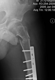 Больной 42 лет получил перелом проксимального отдела бедра. Ранее (1 год назад) оперирован на том же бедре по поводу оскольчатого диафизарного перелома. Четкой консолидации диафизарного перелома на рентгенограммах нет. Сопутствующие заболевания - tbs и гепатит С. При обсуждении хотелось бы услышать варианты лечения 1) "в идеале" и 2) с учетом социального статуса. Спасибо, А.Ситник