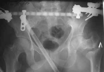 Возможно, пример (в приложении) поможет Вам определиться с выбором тактики лечения (у нашего пациента, кроме тугого ложного сустава вертельной области, сложная деформация н/3 бедренной кости; т.к. это не имеет значения к обсуждаемой теме - оставил "за кадром"). Как Вы видите, мы в данном случае не вводили чрескостные элементы в зону установки имплантата. При отказе от наложения опоры на таз (кстати, она не обязательно может быть громоздкая спицевая; арки со стержнями-шурупами, введенными в крыло подвздошной вполне достаточно) "не удивляйтесь", если опора со стержнями-шурупами, введенными в вертельной области в скором времени дестабилизируется, возникнет воспаление мягких тканей у чрескостных элементов. Такая опора "имеет на это право": нагрузка конечности от вершины дистального фрагмента до кончиков пальцев ляжет на нее. А двух-трех введенных рядом стержней-шурупов, как их не разноси от фронтальной плоскости, в данном