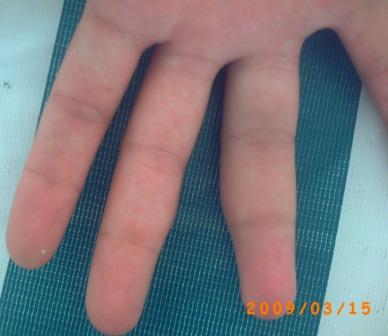 После Вашего послания сделал Р-граф. всей кисти, оказалось имеется патология 2 и 3 пястных костей!
