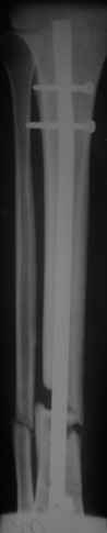 Учитывая изначальные снимки и то. что сделали , не открывая - весьма достойно. Доктор Коган прав - перелом немного перерастянут ( что хорошо видно по фибуле), а перерастянутые переломы большеберцовой срастаются очень плохо. Поэтому я бы обязательно дал раннюю динамизацию - на 6 неделях ( когда можно не опасаться малротации) разблокировал бы проксимальный фрагмент полностью и начал бы нагружать ногу. Будьте готовы к остеотомии ( или остеоэктомии участка) малоберцовой чеерз несколько месяцев- уж слишком хорошо стоит - очень вероятно, что срастется рано и будет держать большеберцовую перерастянутой