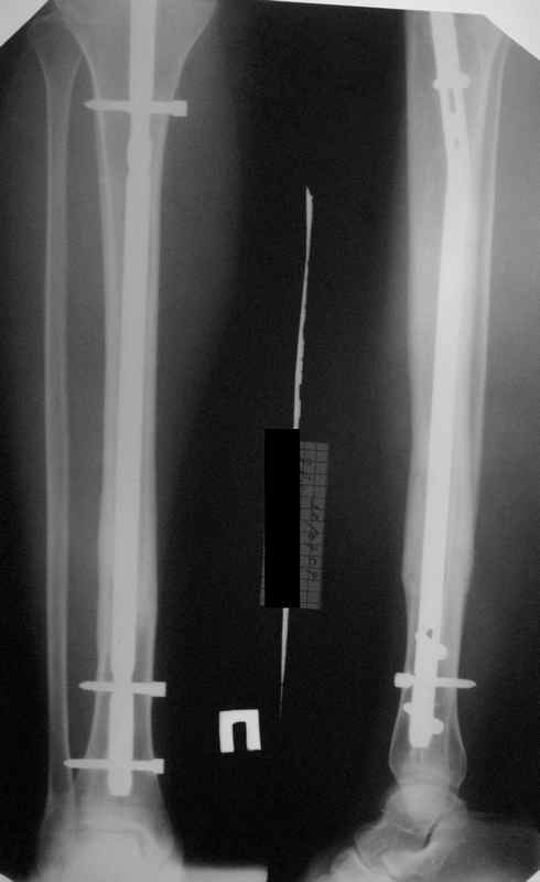 В Кемпбелле можно прочитать, что Fractures in the distal third of the tibia had the highest frequency of nail breakage.