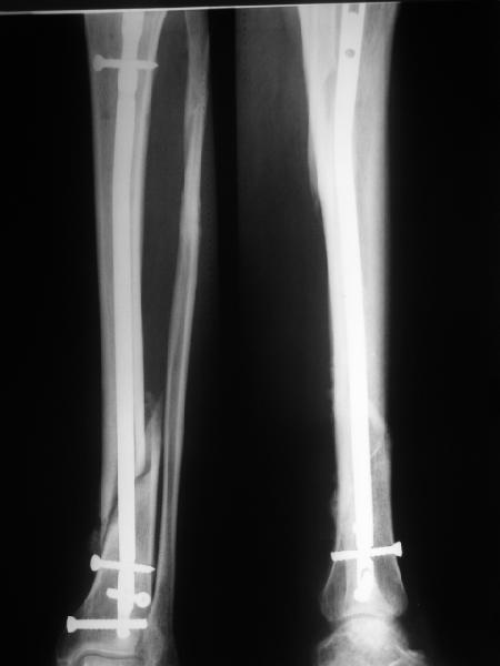 Все это к тому, что те, кто занимается гвоздями и Вы в том числе можете выложить не один снимок с подобными диастазами и вальгусами-варусами, где достигнуто сращение и не получено проблем. Тогда откуда такая "адназначность" врешении об реостеосинтезе?
