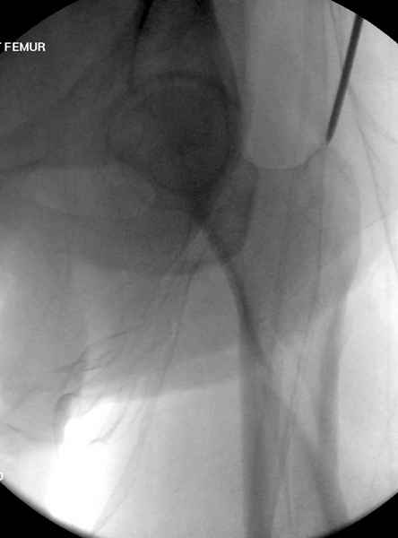 Учитывая, что случай ургентный, больной поступил вечером, не стали делать вытяжение и срочно провели операцию по фиксации перелома бедра антеградным штифтом Versa Nail от DePuy.