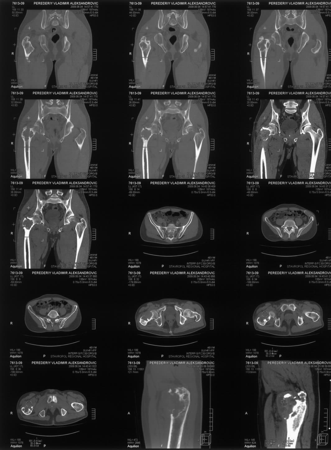 Уважаемые коллеги! Очень прошу содействия по поводу случая больного П., находящегося сейчас в стационаре. Диагноз: Ангиосаркома проксимального отдела правой бедренной кости. Патологический перелом шейки бедренной кости. Множественные метастазы в легкие, позвоночник, ребра, кости таза. 31.05.09 упал дома с высоты собственного роста. Появились сильные боли в правом тазобедренном суставе. Самостоятельно обратился в ГУЗ «СККЦ СВМП». При клиническом обследовании и рентгенографии был диагностирован патологический перелом шейки бедренной кости.Объективно: Состояние удовлетворительное. Сознание ясное. Положение активное в пределах постели. Кожные покровы и видимые слизистые обычной окраски и влажности. Температура тела 36,6°С. Периферические лимфоузлы не увеличены. Язык влажный, чистый. Грудная клетка обычной формы. Перкуторно определяется ясный легочный звук над всей поверхностью легких. Дыхание ритмичное везикулярное с жестким оттенком проводится во все отделы легких. ЧДД = 18 мин-1. Границы сердца в пределах возрастной нормы. Сердечные тоны ритмичные приглушенные. Пульс удовлетворительных свойств. ЧСС = Ps = 72 мин-1. АД = 130/80 мм.рт.ст. Живот обычной формы, мягкий безболезненный при пальпации во всех отделах. Границы печени в пределах возрастной нормы. Аускультативно отчетливо определяется перистальтический шум. Симптомов раздражения брюшины не выявлено. Симптом поколачивания отрицательный с обеих сторон. Периферических отеков нет. Стул, диурез самостоятельные. Местный статус: С постели не встает. Правая нижняя конечность фиксирована двухлонгетной гипсовой повязкой от пальцев стопы до реберной дуги. Иммобилизация удовлетворительная, дискомфорта не причиняет. Область тазобедренного сустава визуально не изменена. Пальпация резко болезненна в проекции сустава и большого вертела бедренной кости. Симптом "прилипшей пятки" справа положительный. Движения в правом тазобедренном суставе резко болезненны. Гемодинамических и неврологических расстройств в стопе не выявлено. МРТ в формате DICOM выложил вместе с просмотрщиком вот здесь (17 Мб):http://files.mail.ru/VTMKDV Есть еще обычные томограммы. Выложил здесь (460 Кб):http://files.mail.ru/IXF9M8 1 Какова тактика лечения у данного пациента? 2 Целесообразность паллиативного вмешательства на первичном очаге, объем вмешательства? Заранее благодарен, Bekkhan Khatsiev Stavropol < | >