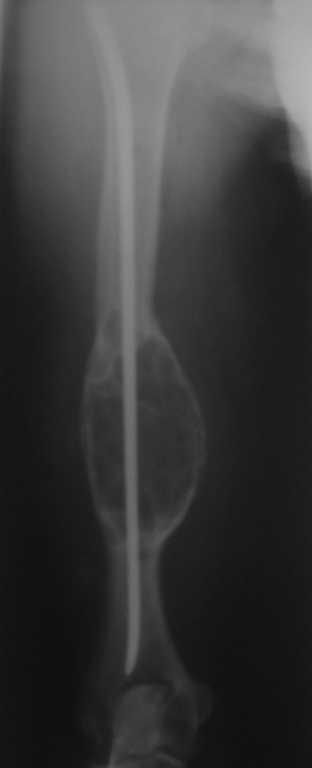 Вопросы: Диагноз? Варианты лечения? Может резекция в пределах здоровой кости, каркасная металлопластика плюс гвоздь? Спасибо.