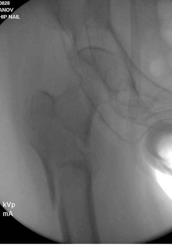А вот к данным операциям без рентгена, как советует специалисты, я бы отнесся скептически, как раз здесь можно натворить много ошибок, например, от неправильной установки гвоздя мимо шейки до неудовлетворительной репозиции.