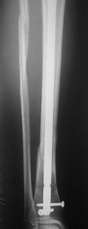 В январе 2009 года нами оперирована пациентка с переломом н\3 голени штифтом Expert. Динамизация через 4 месяца, пациентка при этом уже ходила с тростью. Дома периодически передвигалась без дополнительной опоры.