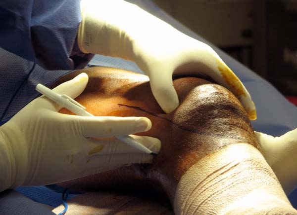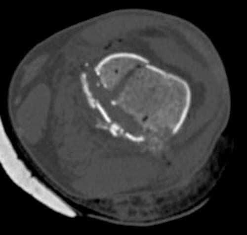 У молодого человека огнестрельное слепое ранение н/3 правого бедра. Поступил в клинику с внутрисуставным многооскольчатым Т-отразным переломом дистального отдела бедренной кости. Дополнительно на СТ-исследовании обнаружен перелом внутреннего мыщелка Hoffa со смещением. Больной взят в операционную на второй день, где из небольшого медиального доступа выполнена артротомия коленного сустава. Произведена репозиция отломков, фиксация винтами. Попутно удалена пуля. Первым делом была достигнута репозиция медиального мыщелка (перелома Hoffa, где коронарная плоскость перелома трудно поддается закрытой репозиции и фиксации. ) Затем была достигнута идеальная репозиция суставной поверхности бедра и фиксация компрессирующими headless screws. Дистальный отдел бедра был дополнительно фиксирован buttress пластиной с медиальной стороны из того же разреза. Для усиления фиксации латеральной колонны - с латеральной стороны закрытым способом из минидоступа установлена еще buttress plate. Пулевой канал дополнительно не подвергался хирургической обработке. Итак, пациент поступает 04 октября, оперирован 05 октября, выписан сегодня 08 октября на амбулаторное долечивание. 5 суток на все про все. Заднепровский Никита