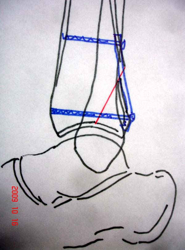 Без применения сложной конструкции, а обычными параллельными шурупами. Шурупы в 3.5 мм и дополнительно фиксация крючковидной пластиной, сделанной из 3.5 mm semitubular пластиной, Butress или аntiglade фиксация.