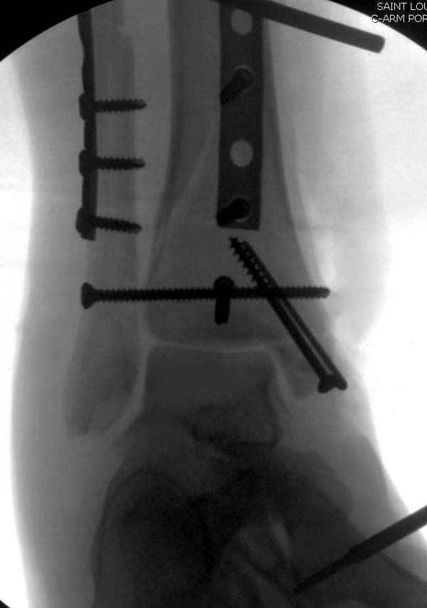 Артродез штифтом от Синтеза - немного агрессивно, а для улучшения качества жизни вместо артродеза голеностопа можно было бы предложить артродез подтаранного сустава. Тремя 6.5 мм каннюлированными шурупами через пятку.