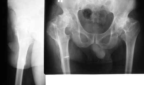 из пациент 60 лет.В 1980 году медиализирующая остеотомия правого бедра с фиксацией пластиной Петуховой.