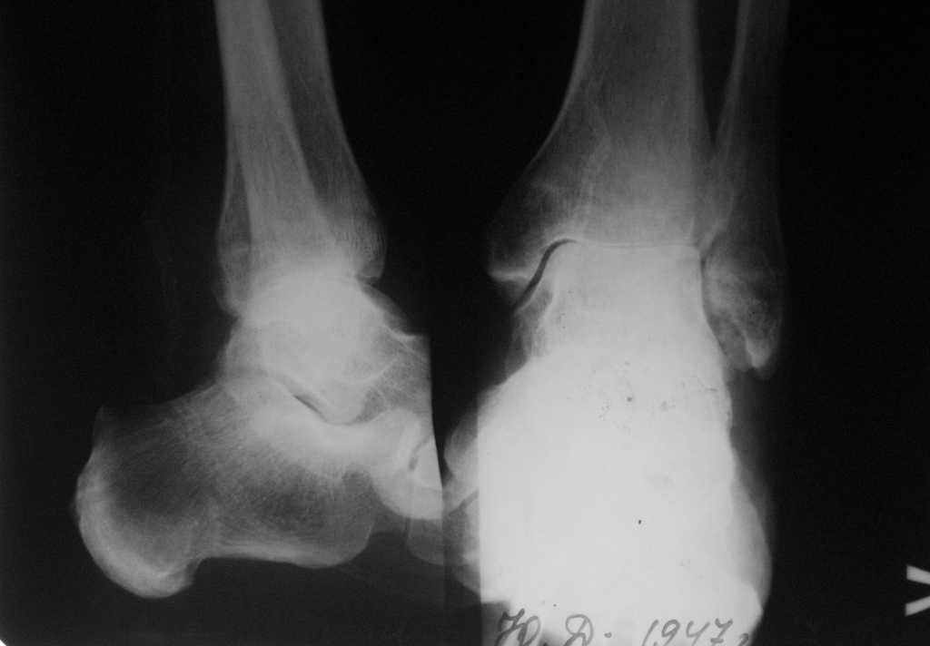 Пациент 57 лет, ранее выполнена пересадка сердца. Травма около 2-х лет назад. В настоящее время- передвигается при помощи костылей, выраженные боли и ограничение движений в голеностопном суставе. На конечность практически не наступает. Активный - рыбалка, охота, дача, дети и внуки.