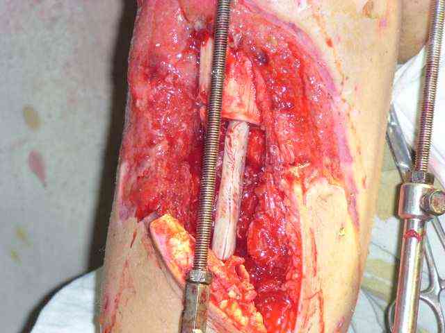 Позволю высказать свое мнение. У меня есть сомнения, что задняя стенка большеберцовой кости осталась "здоровой". Если после первой операции костная ткань и могла остаться частично жизнеспособной, то развившаяся гнойная инфекция наверняка способствовала окончательному некрозу кости.