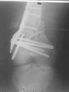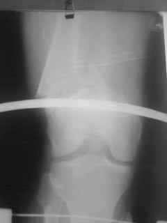 01.12.09г. оперировал больного с подобной травмой в ЦРБ на 4-е сутки после ДТП. Перелом открытый - рана находилась медиально чуть выше надколенника длиной примерно 3-4 см. До этого при поступлении было выполнено ПХО раны и скелетное вытяжение. На момент операции рана без признаков воспаления, состояние больного удовлетворительное.На первичных снимках перелом А3. На операции оказалось С3. Перелом фиксирован мыщелковой пластиной. Для репозиции понадобился медиальный доступ. Медиальный блок дополнен костно-губчатым аутотрансплантатом. На сегодняшний день раны заживают первично, швы еще не сняты, температура тела нормальная, отек бедра значительно уменьшился, имеется анемия средней степени, проводится ЛФК. Фото досылаю