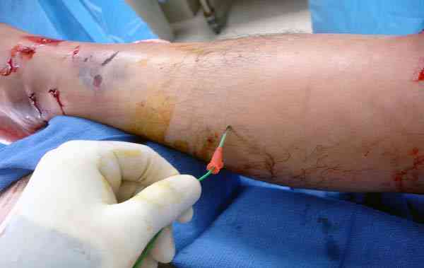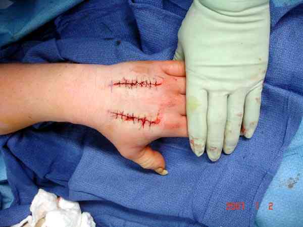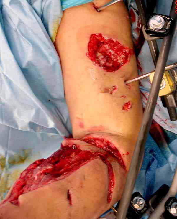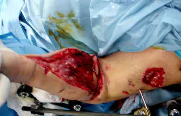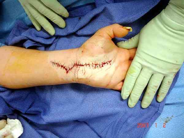2.Как выглядит КС на верхней конечности?(тоже фасциотомия?)